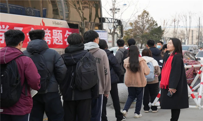 考(kǎo)試當天,校領導親自到校門口為即將出征的學(xué)子們送(sòng)考。他們的到來,為學生們增添了信心,也傳遞了學校對學子們的深切關懷。